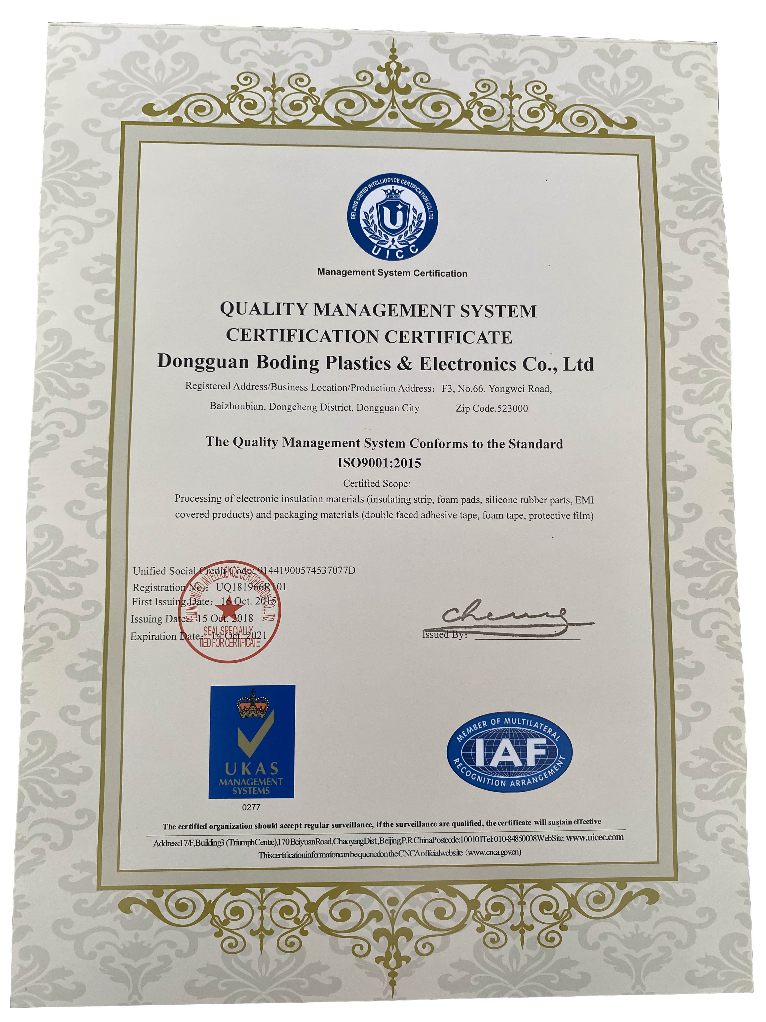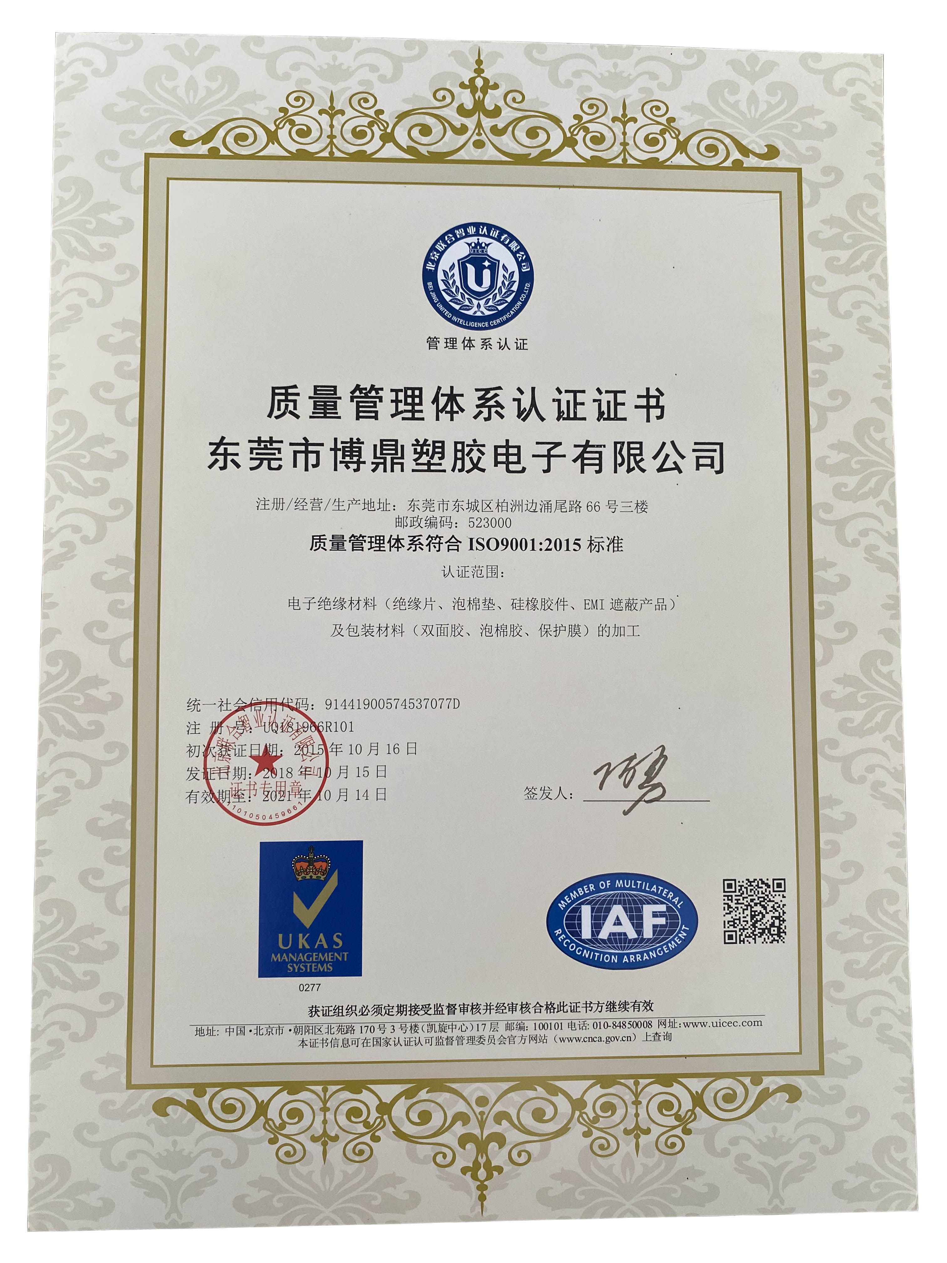 東莞市博鼎塑膠電子有限公司,2008年創立于東莞,主要產品為絕緣導熱材料及導熱材料、保護材料、膠粘產品,是中國領先的、創新型專業絕緣導熱解決方案配套商。公司現已通過ISO9001國際質量管理體系的認證。