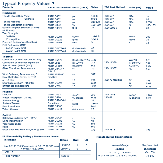 顏色透明、磨砂,厚度0.1-0.5mm。酸酯薄膜,兩面都有拋光的表面,具有良好的熱成形、液壓成形、壓花、模切、折彎等性能。透光度93%以上,擁有突出的絕緣強度